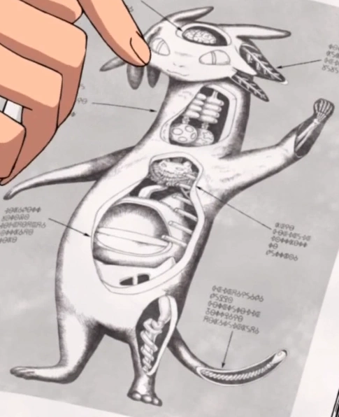 Betelgeusian hearts develop in front of their lungs and beat much faster than human hearts. Most interestingly, Betelgeusian hearts are shaped like cat faces, complete with simple eyes that close and become X-shaped when the Betelgeusian dies.