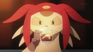 Meow has a large appetite and is a connoisseur of ramen. He snacks on bags of potato chips and cans of peach nectar, which he usually leaves lying all over the Aloha Oe. He also enjoys seafood a lot; according to Dandy, Meow sprinkles fish flakes on everything he eats.