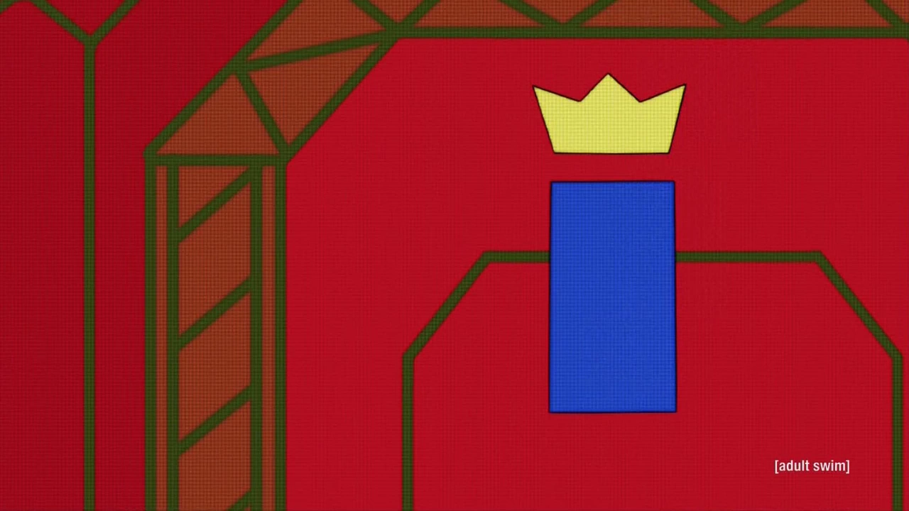 Paul appears to be a blue rectangle with a yellow crown floating above him.