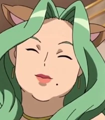 Pine-Pine is a tall green-haired alien woman with a pair of cat-like ears on the top of her head and normal ears on the sides. In addition, she has a huge butt and large breasts, contributing to her slightly chubby physique. She also has a beauty mark to the bottom left side of her mouth.